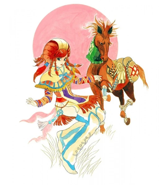 - "Daughter of a nomad group of a foreign world guided by fate destined. Although she was running cheerfully on the meadow, she is caught by a slave merchant one day. It was saved by urban thieves and managed to come back to the grassland to find grandfathers and friends without having anyone in the village who managed to return to the grassland. She was reunited with the family with the cooperation of various people, and she was entrusted with the fate of hindering the rebirth of the evil spirit. The story of Ayasha full of turbulence is still being handed down in a different world with its bright smile. (運命石に導かれし異界の遊牧民の娘。元気に草原を駆けていた彼女だが、ある日奴隷商人に捕えられてしまう。都会の盗賊に救われ、なんとか草原に帰り着いたものの村に人影は無く、祖父や仲間を探すための旅に出る。様々な人々の協力を得て一族と再会した彼女は邪神復活阻止という運命を託された。波乱に満ちたアイシャの物語は、その明るい笑顔と共に今も異界で語り継がれているという。?)"