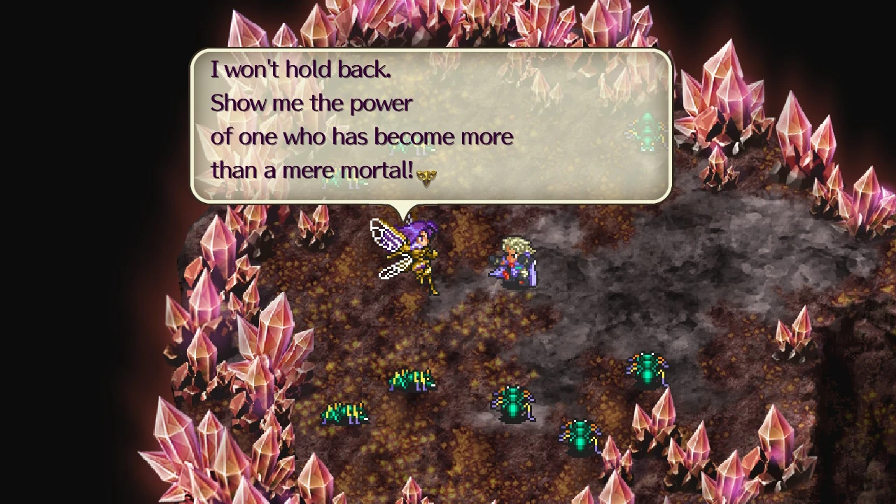 The Dread Queen is not a rather troublesome foe unlike the previously fought Memories. Beforehand, learning the corresponding evade skills for Whirlwind (Kaiser Ant), Corkscrew (Peg Powler), Bonecrusher (Nightmare, Azoth), Twinstrike (Crab Rider), will greatly help during the second part of the battle. These evade skills can be conveniently learned with ease through the Maze of Memory. The ideal team to maximize damage output will involve: An Emperor/Empress with attributes focused on Martial attacks (a Ninja, a Levante Guard, a Mercenary, the Final Emperor), a pair of frontliners with attributes focused on speed (Ninja, Levante Guard, Light Infantry, Armed Merchant), and a pair of fast mages with high firepower (Strategist, Iris). The formation to be used will be Amazon Strike in conjuction with a single use of the Light Wall spell (Terrology+Cosmology at LVL 25) per turn. Armor is not relevant during the fight, as instead boosting status defense is preferred; so any strong anti-status charms (Kris, Somon Ring, Intaglio Ring, Darkstone Ring) are recommended. Any of the rings (especially the Power and Magic ones) found during the Maze exploration will also come in-handy. Skill levels of about 35-40 are more than enough to deal with the fight. High-end techniques (Dark Blade, Prism Blade, Reverse Delta) are obligatory, especially Guanyin for the current Emperor/Empress; while the only offensive spell for the mages will be Crimson Flare (Pyrology+Cosmology at LVL 25). The battle should be over in no less than a total of 7-5 turns, depending on the skill levels of the player.