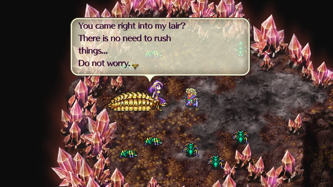 The Queen meets the current Emperor/Empress of Varennes, reacting perplexed to seeing the Emperor/Empress walk directly into her lair. The Queen implies that she will somehow return to the world, to complete her conquest, and even offers taking care of the threat that posed the Seven Heroes. The Queen tries to rebirth the Emperor/Empress into another of her termites, but the Emperor/Empress fights back, showcasing the true power of Inheritance Magic. The Dread Queen transforms into her true self and continues the battle, but is defeated by the efforts of the imperial retinue. In her dying words, the Queen remarks her eventual return, and says that both her and the Emperor/Empress are not that much different...