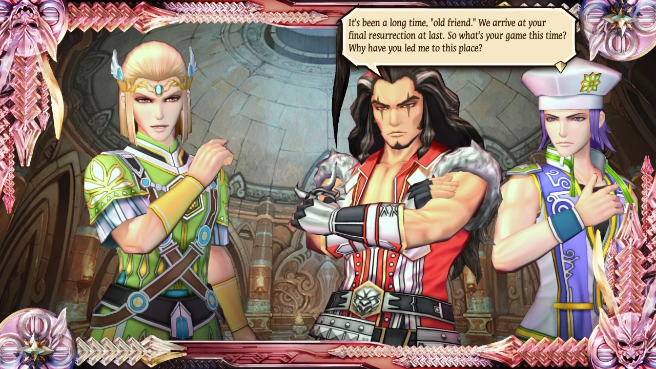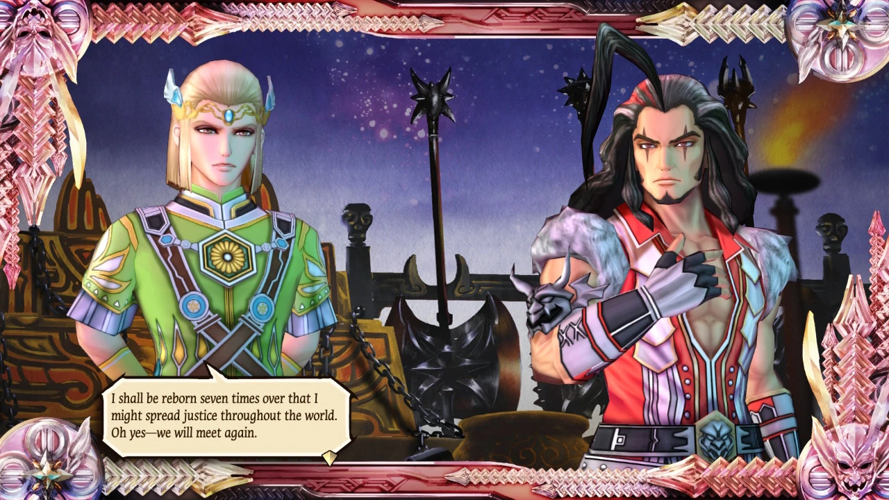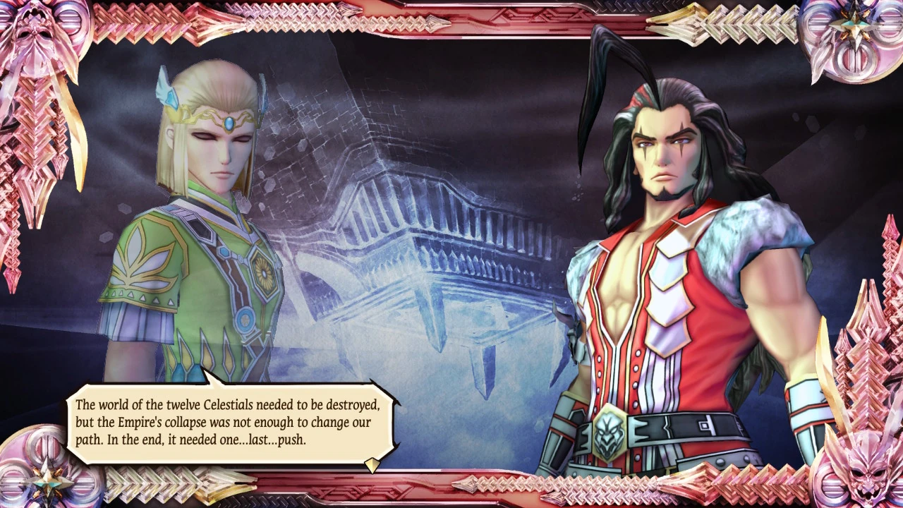 Sigfrei is a key point in the story, especially for Balmaint, appearing as the focus of one of the possible common scenarios for everyone but Leonard. Appearing in several regions spreading discord, Sigfrei aims to destroy what little remains of the world founded by the Celestials, in order to pave the way for the new world that is soon to birth after the fall of the Empire.